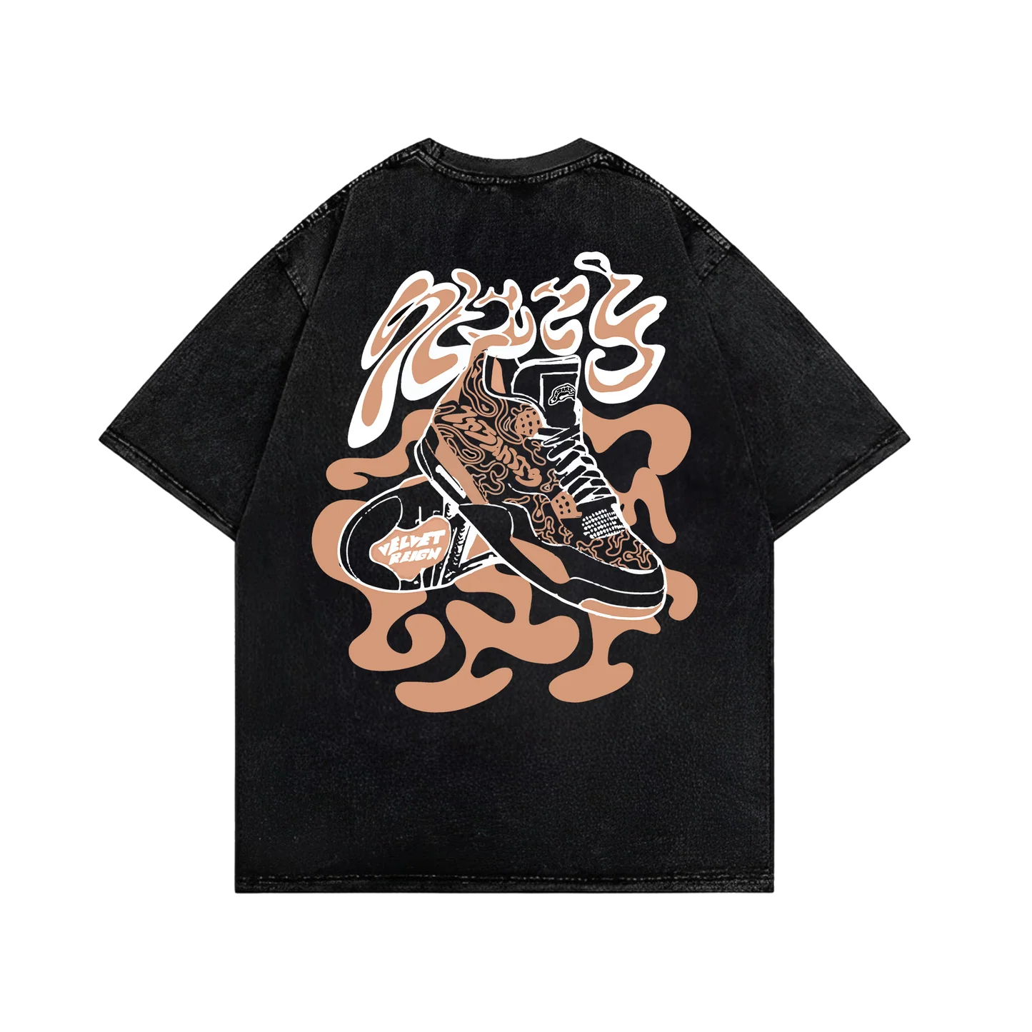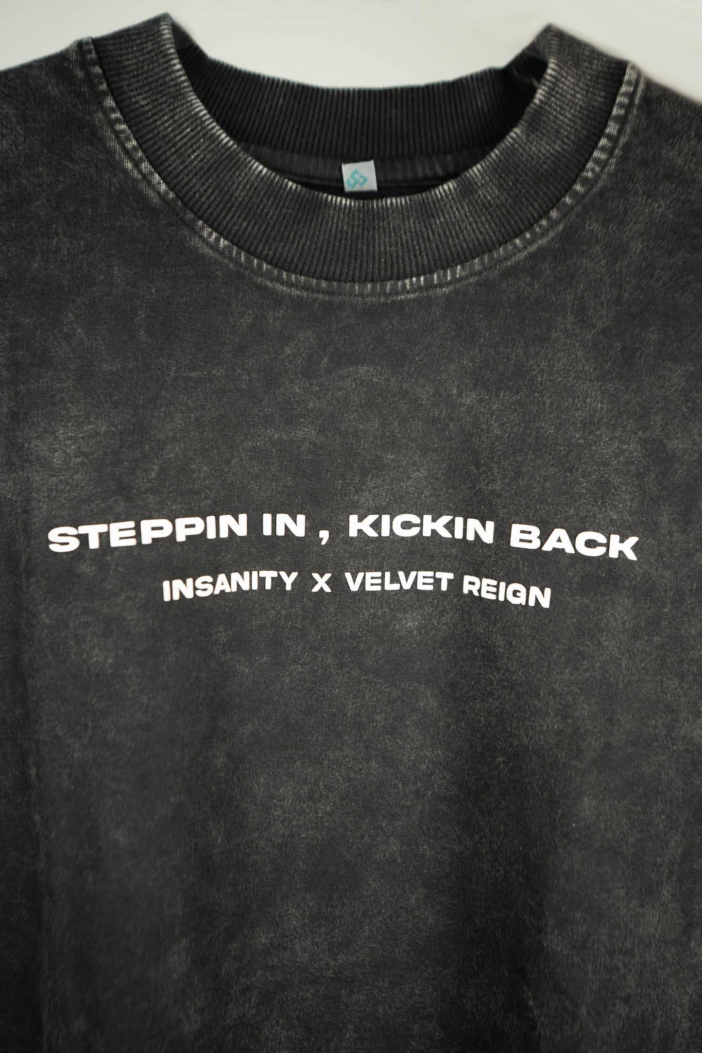 Introducing the Stiiizy Tee, a standout piece from the Insanity X Velvet Reign collaboration. Crafted with a unique acid wash and featuring bold sneaker prints, this tee is perfect for making a stylish statement while keeping comfortable.