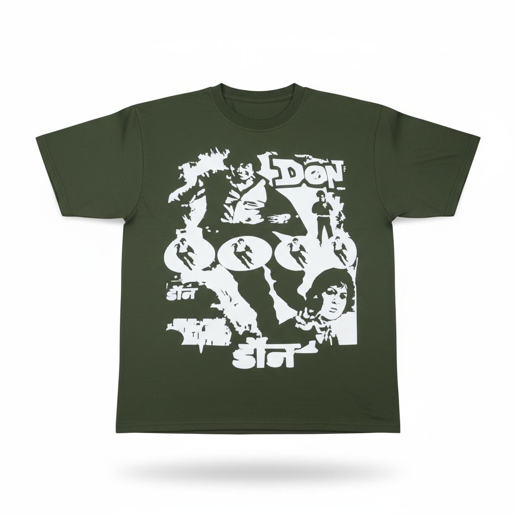 An homage to the great Amitabh Bachchan and the golden era of Bollywood that shaped our culture. The Don Tee blends retro film poster graphics with a modern streetwear silhouette, paying respect to the icons who defined swagger. Crafted in a rich olive green with oversized prints front and back, it’s a nod to cinematic legends and the timeless attitude they inspired. Wear it as a tribute to the stories that made us dream bigger.