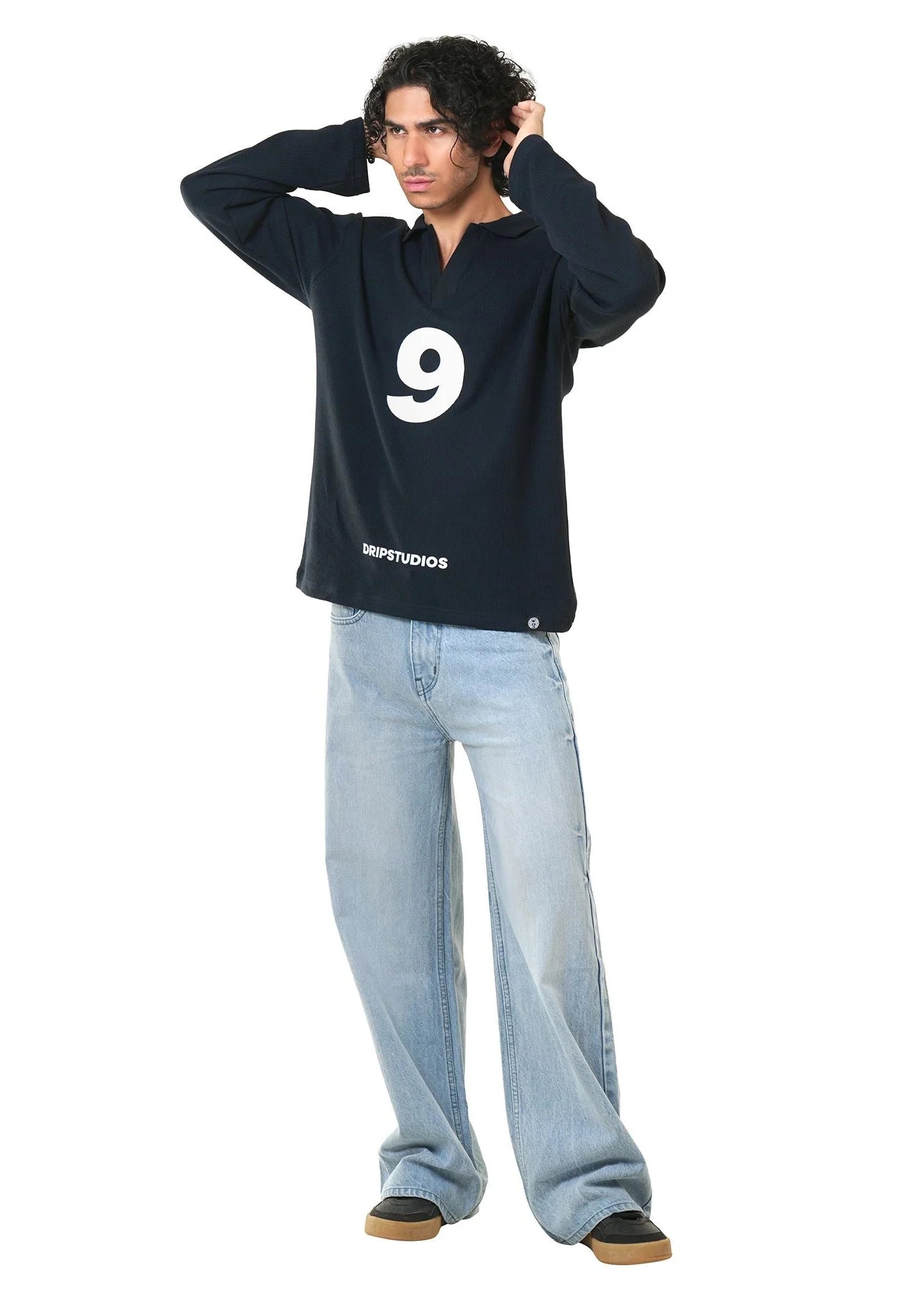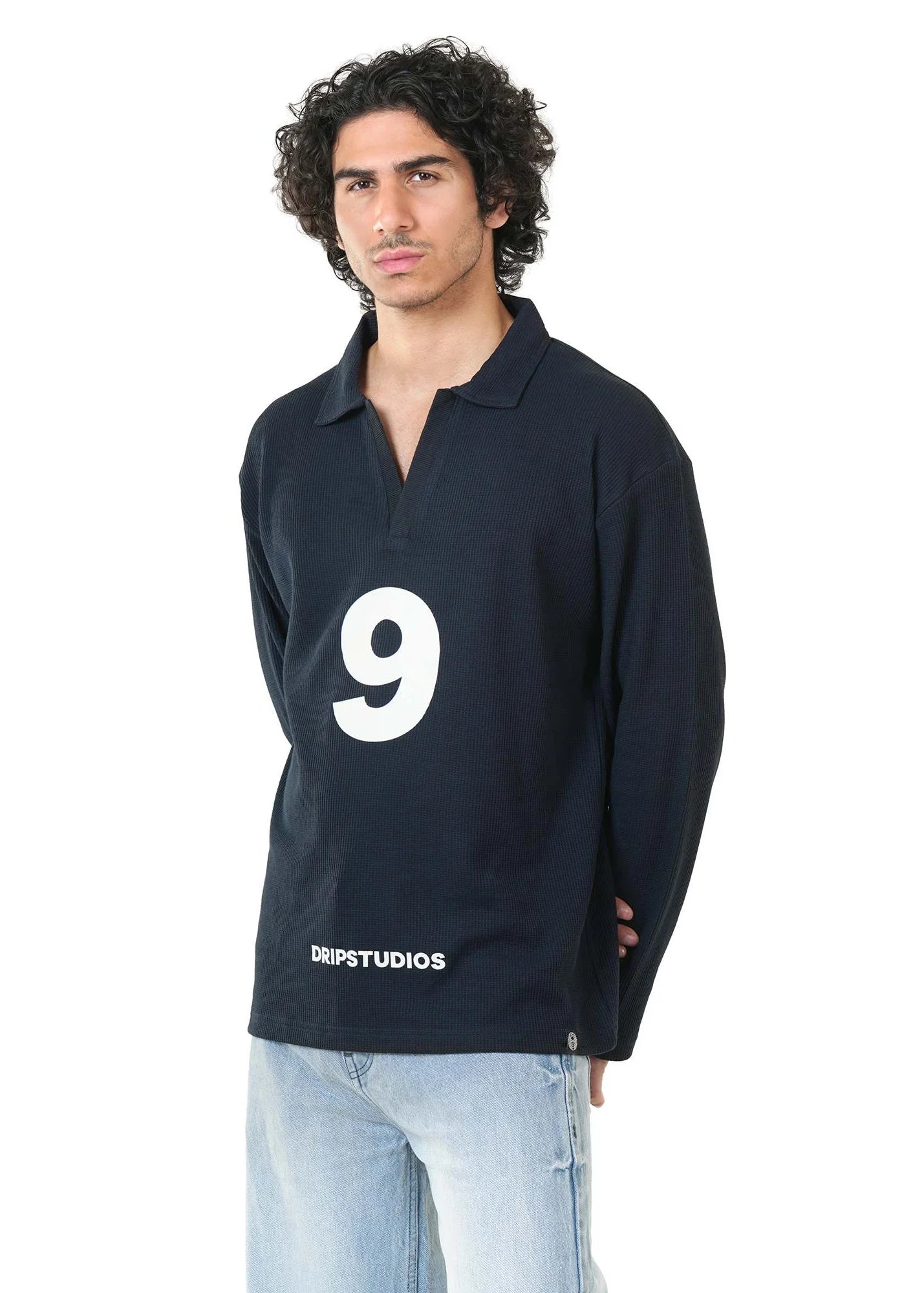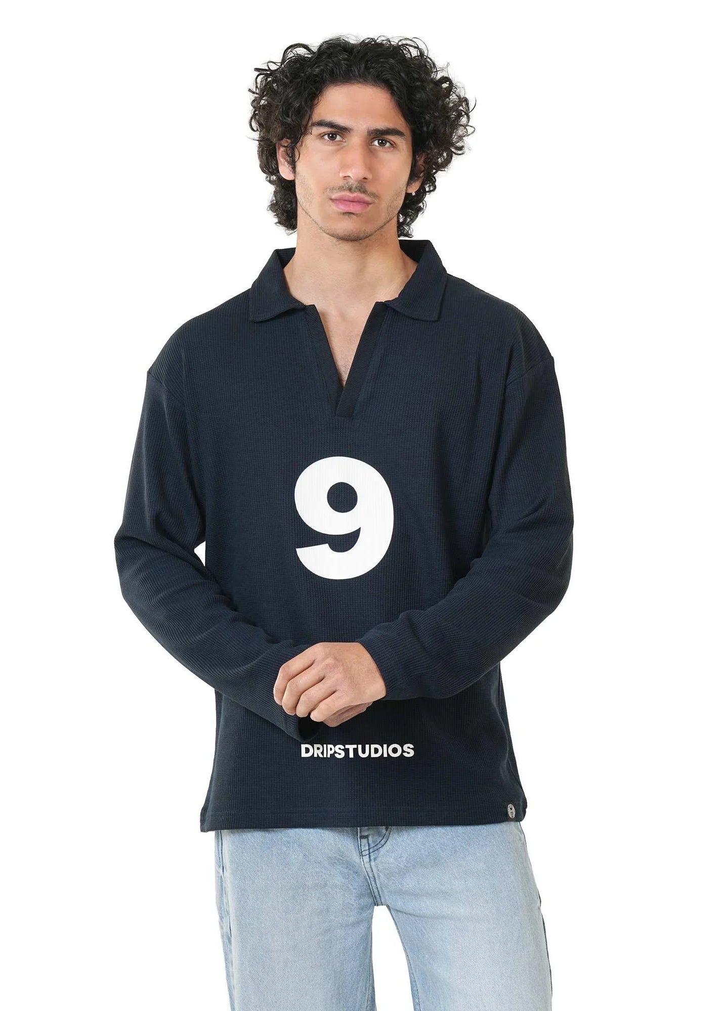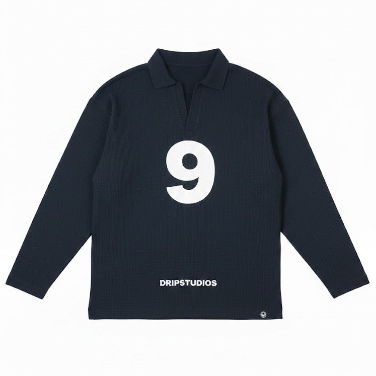 This 240 GSM waffle knit collar tee from Drip Studios blends structure with a relaxed, baggy silhouette for an elevated everyday look. Crafted from premium waffle fabric, it offers breathable comfort with a rich texture and lasting softness. The front features the Drip Signature Number 9 in high-quality vinyl print, keeping the design bold yet refined, while the back makes a powerful statement with “FEAR NO ONE” in durable vinyl printing. Finished with a knit collar for a clean, polished touch, this tee is combed and bio-washed to ensure superior comfort, shape retention, and long-term wear.