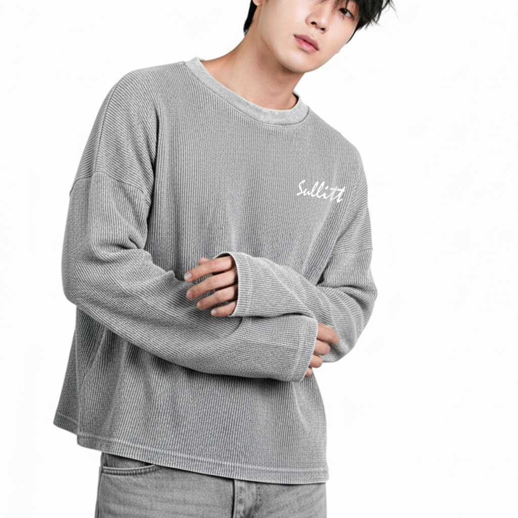 THE GREY WASHED WAFFLE SWEATSHIRT IS DESIGNED TO LOOK LIVED-IN FROM DAY ONE. MADE FROM TEXTURED WAFFLE FABRIC WITH A WASHED GREY FINISH, IT DELIVERS DEPTH, SOFTNESS, AND CHARACTER IN EVERY WEAR.