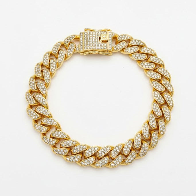 Subtle luxury with a bold edge.The Iced Bracelet is finished in gold plating, paired with brilliant iced detailing for a warm yet striking aesthetic. Designed for those who like their jewellery refined but noticeable.