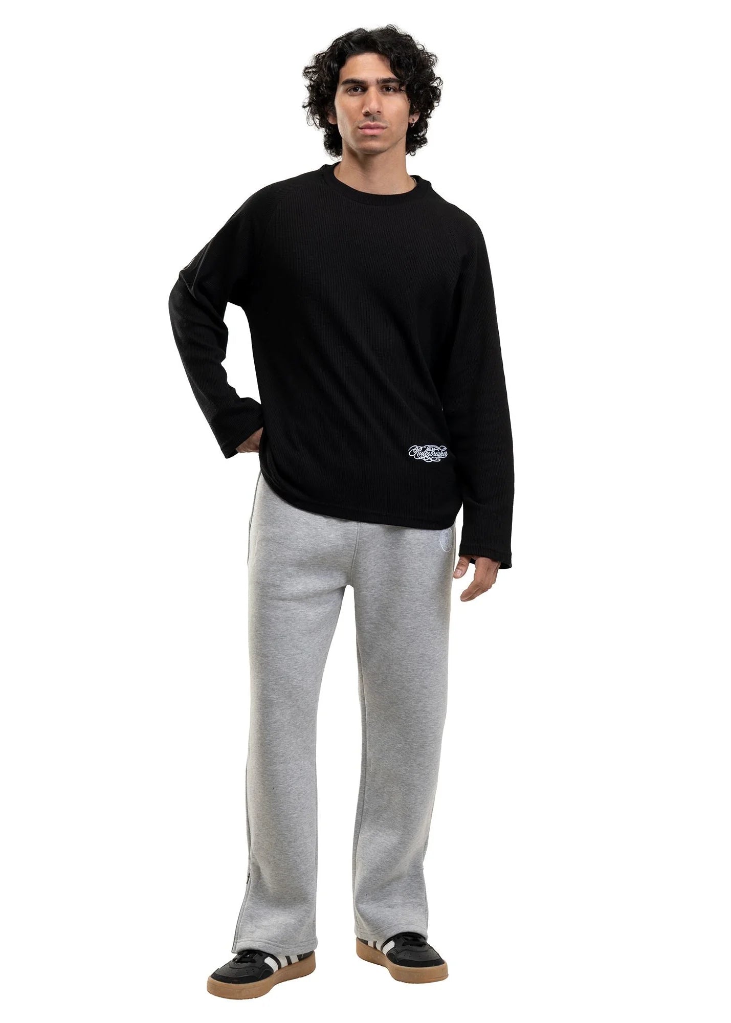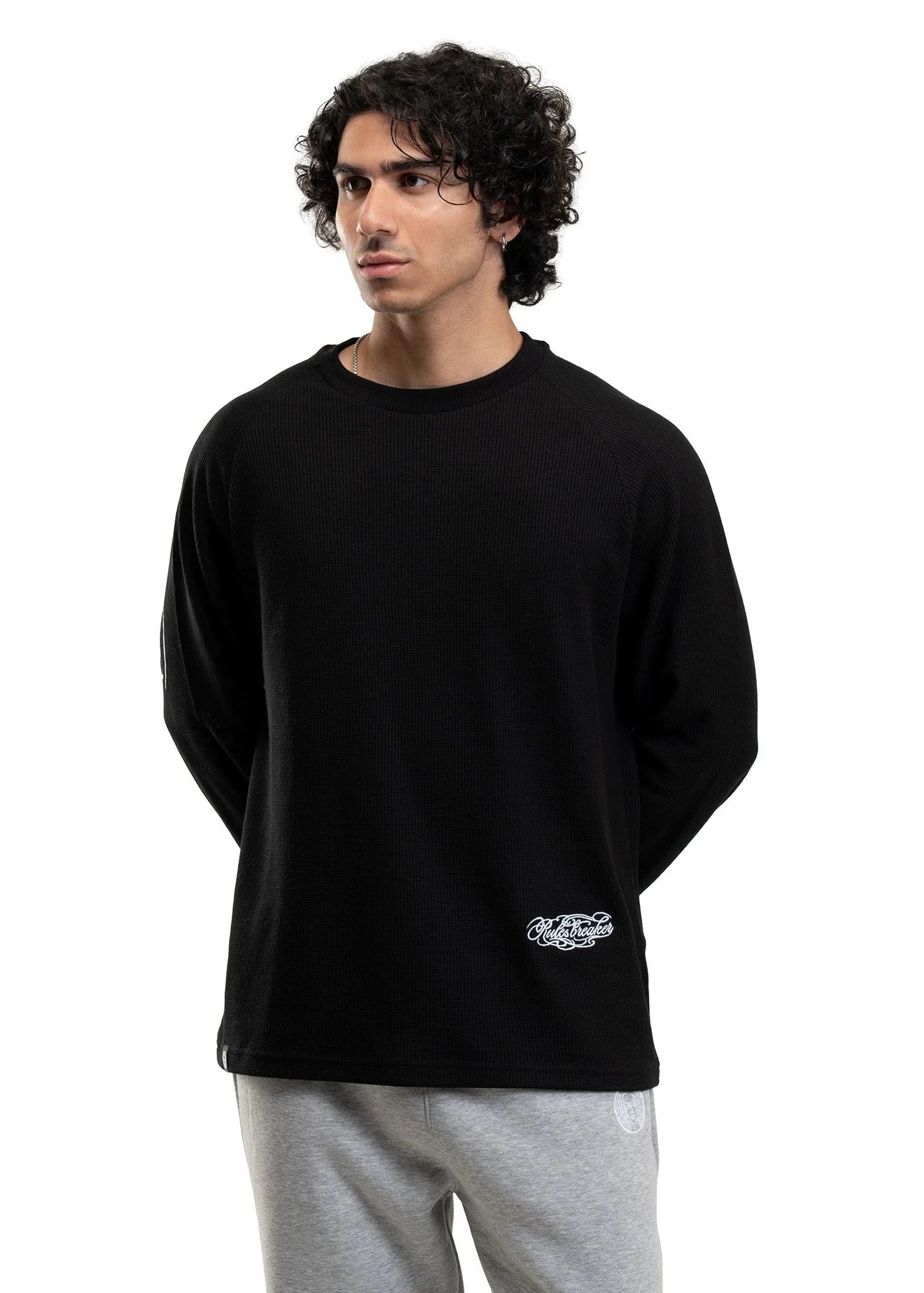 240 GSM. Premium Waffle Fabric. Oversized Fit with Raglan Sleeves. Front Embroidery & Back Silicone Print. Gender-Neutral. Combed & Bio-washed.