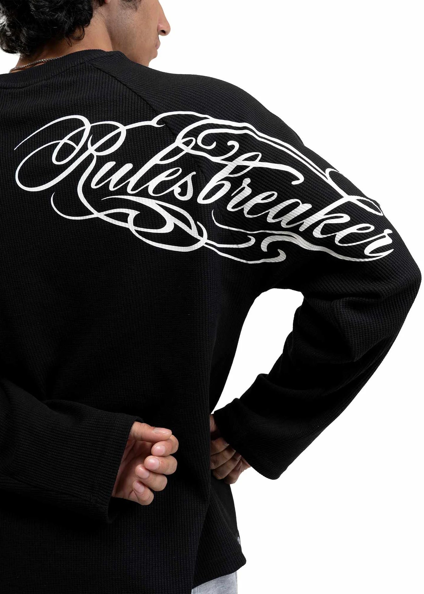This oversized 240 GSM waffle T-shirt from Drip Studios is built for comfort with a refined edge. Designed with raglan sleeves for enhanced mobility and a relaxed drape, it delivers a super-comfy yet decent silhouette. The front features a clean embroidered “Rules Breaker” logo, keeping it minimal and premium, while the back makes a bold statement with a high-quality silicone print reading “Rules Breaker.” Crafted from combed and bio-washed cotton waffle fabric, this tee offers breathability, texture, and lasting softness—perfect for elevated everyday wear.