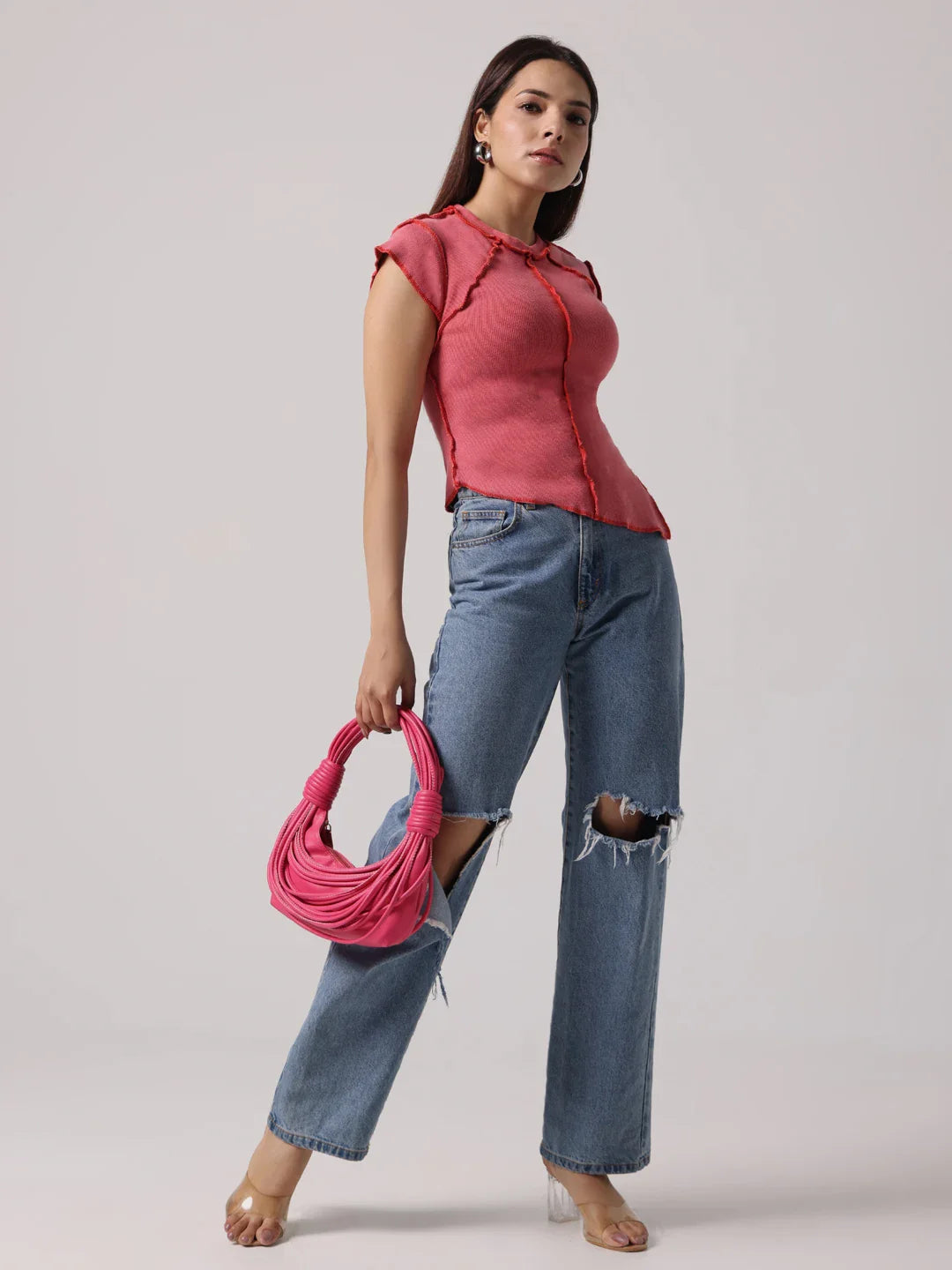BLUSH REVERSIBLE EXPOSED STITCH TOP