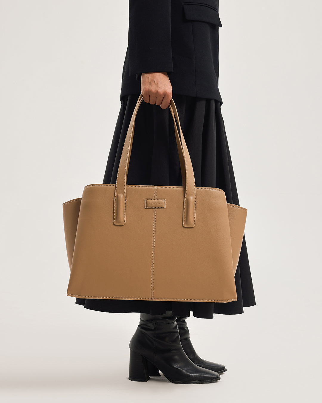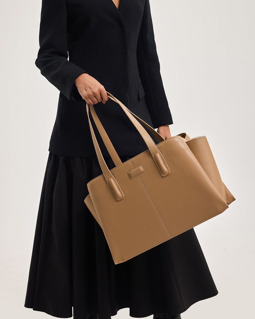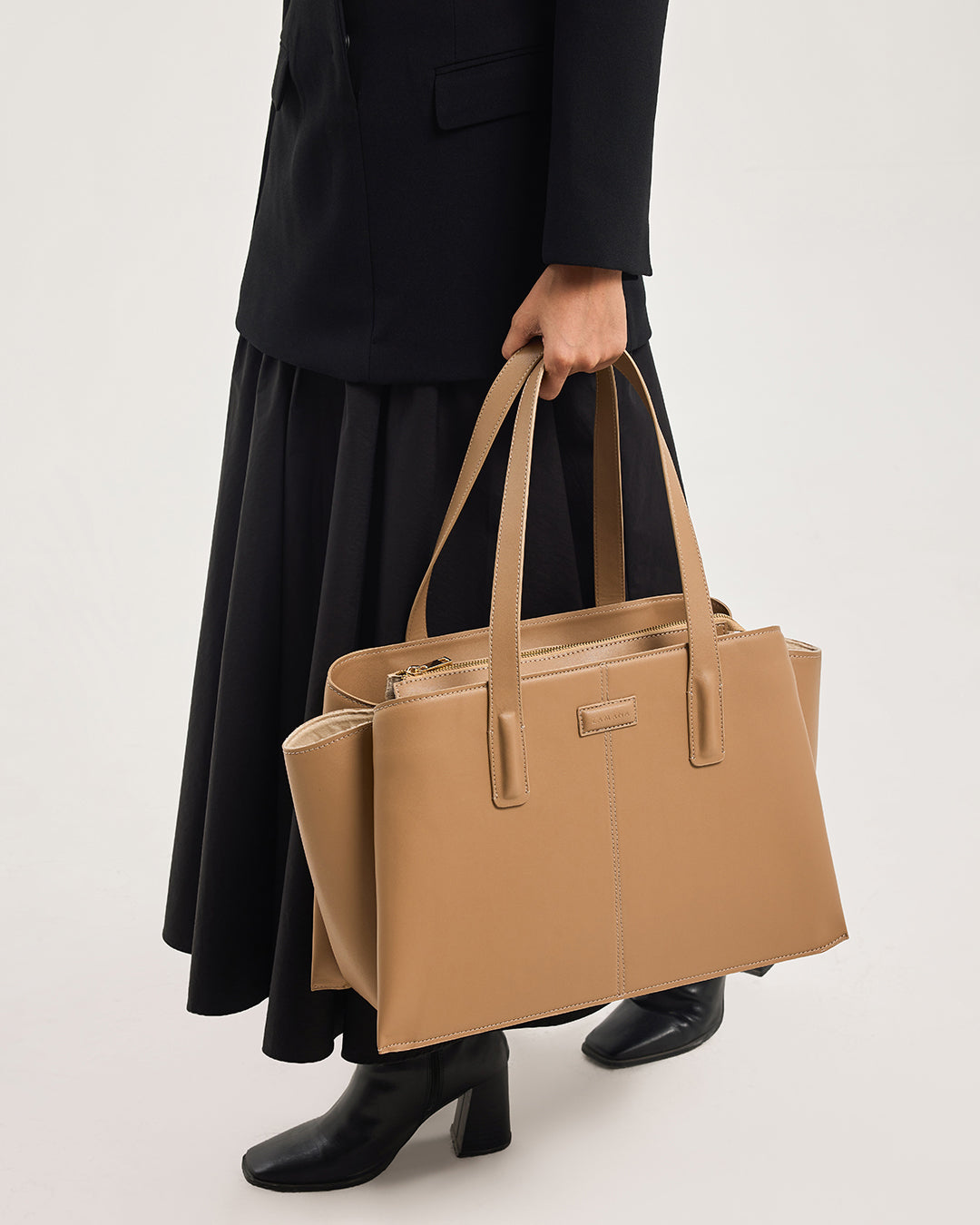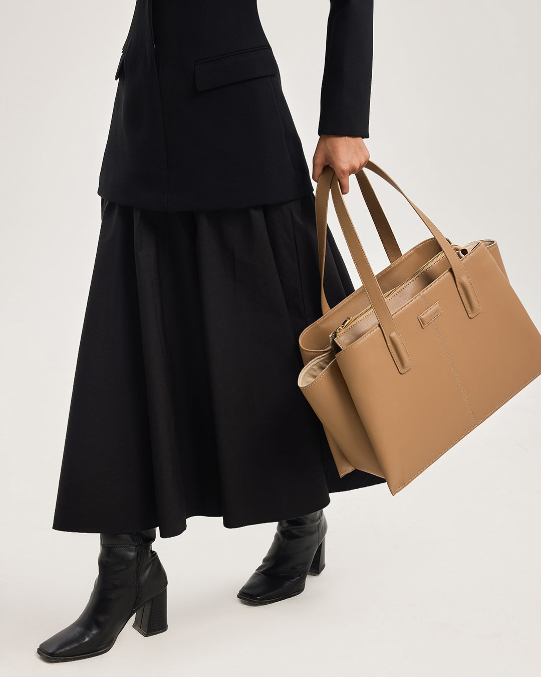 With everything from a structured cut to a functional design, She Means Business is the ultimate companion for any working professional.The mid section can fit a maximum size laptop of 16 inches (diagonally measured) as it can be zipped down.The side pockets can fit upto a 13 inches laptop besides other files and daily use items.She Means Business has pockets, which are on the inside and makes sure that you always stay organised.In addition, the shoulder straps that measure 2cm wide give you comfort.