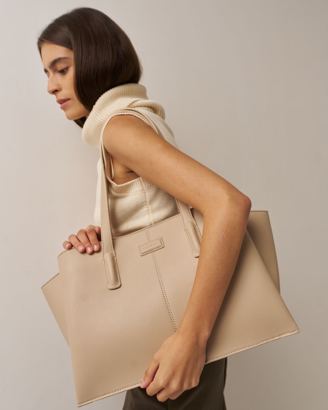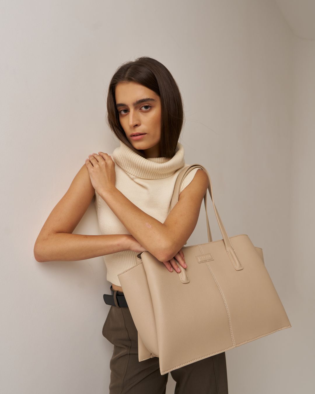 With everything from a structured cut to a functional design, She Means Business is the ultimate companion for any working professional.The mid section can fit a maximum size laptop of 16 inches (diagonally measured) as it can be zipped down.The side pockets can fit upto a 13 inches laptop besides other files and daily use items.She Means Business has pockets, which are on the inside and makes sure that you always stay organised.In addition, the shoulder straps that measure 2cm wide give you comfort.