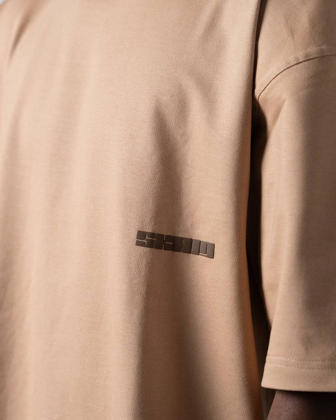 The SKAID Signature Solid Tee in Beige is crafted from a premium heavyweight cotton designed to deliver structure, softness, and lasting comfort. The piece features the iconic SKAID LOGO printed in a clean, tonal contrast on the chest and expanded boldly across the back. A minimal statement with a modern edge. Cut in a relaxed silhouette, the Signature Solid Tee drapes effortlessly while maintaining a defined shape. The rib-knit collar and reinforced seams enhance durability, making it an essential for everyday wear. Designed with simplicity and function at its core, this tee embodies the SKAID philosophy of elevated minimalism and premium streetwear.