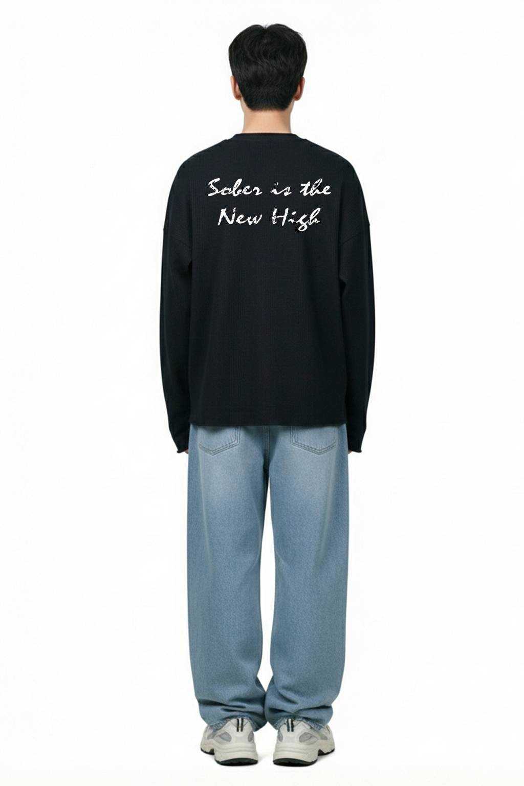 THE MINIMAL BLACK BASE KEEPS IT TIMELESS, WHILE THE BOLD BACK PRINT “SOBER IS THE NEW HIGH” MAKES A QUIET BUT POWERFUL STATEMENT. DESIGNED FOR COMFORT, CONFIDENCE, AND CONSCIOUS LIVING—THIS PIECE SPEAKS WITHOUT TRYING TOO HARD.