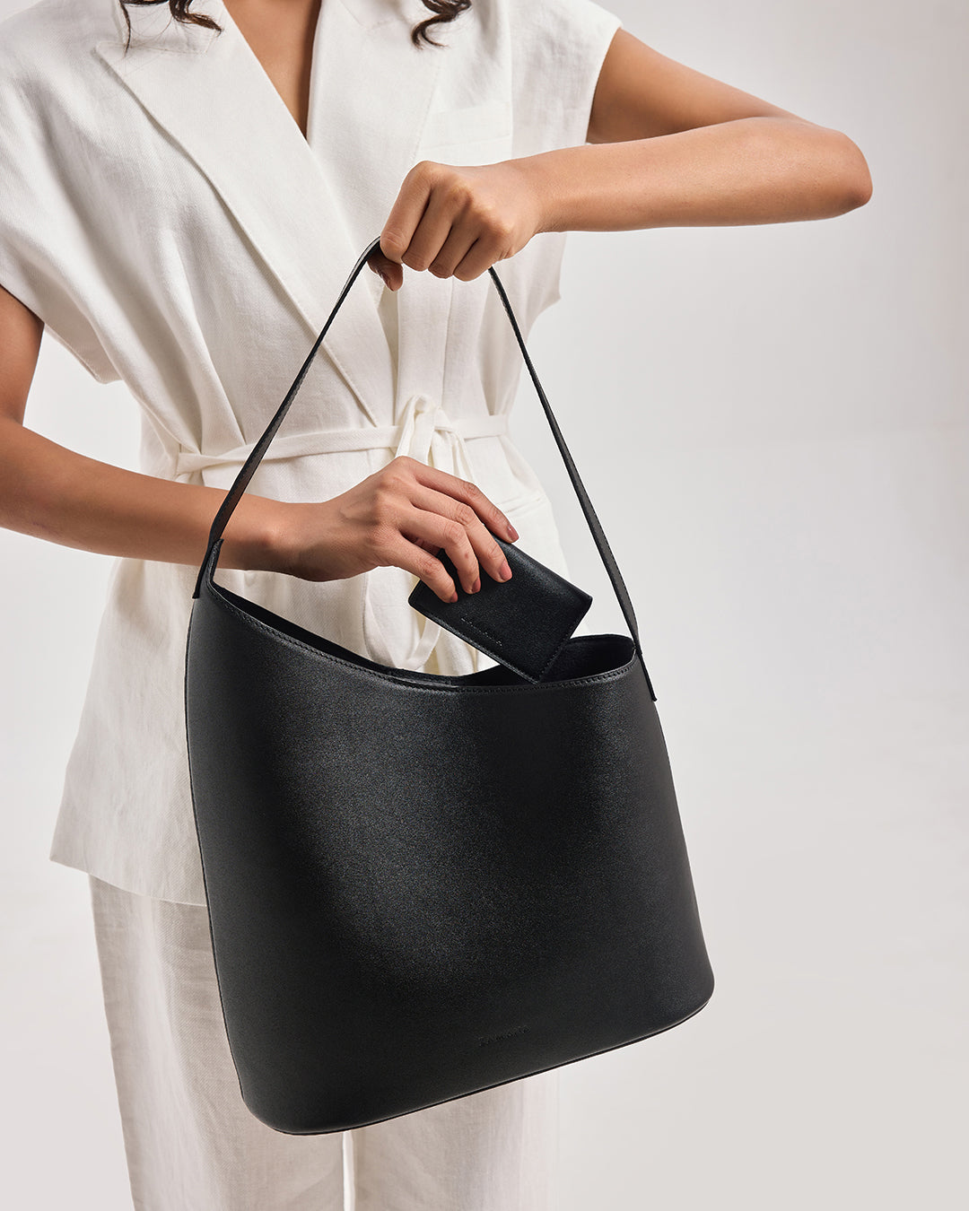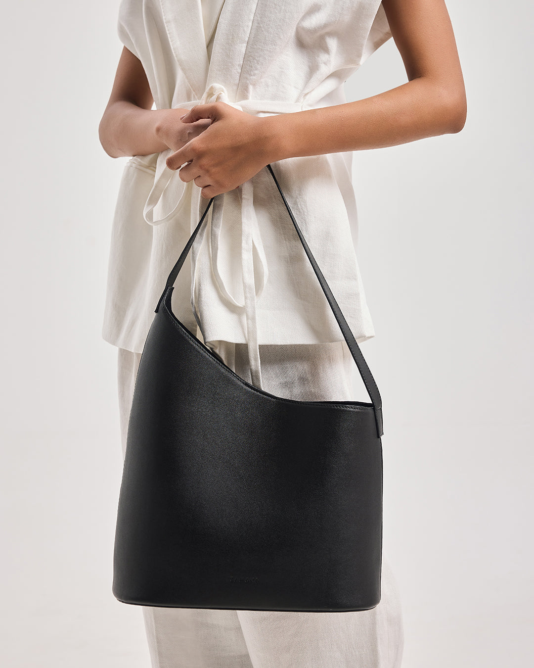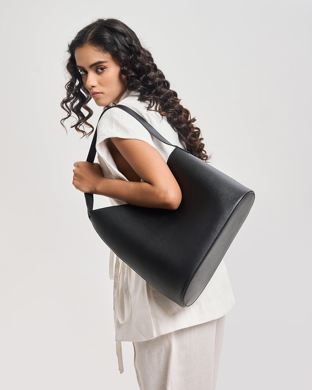 Thoughtfully proportioned for daily ease, this tote offers generous space without compromising elegance, making it an ideal choice for modern routines. The single, sculpted shoulder strap ensures comfort, while the minimal exterior keeps the focus on form, texture, and timeless appeal.