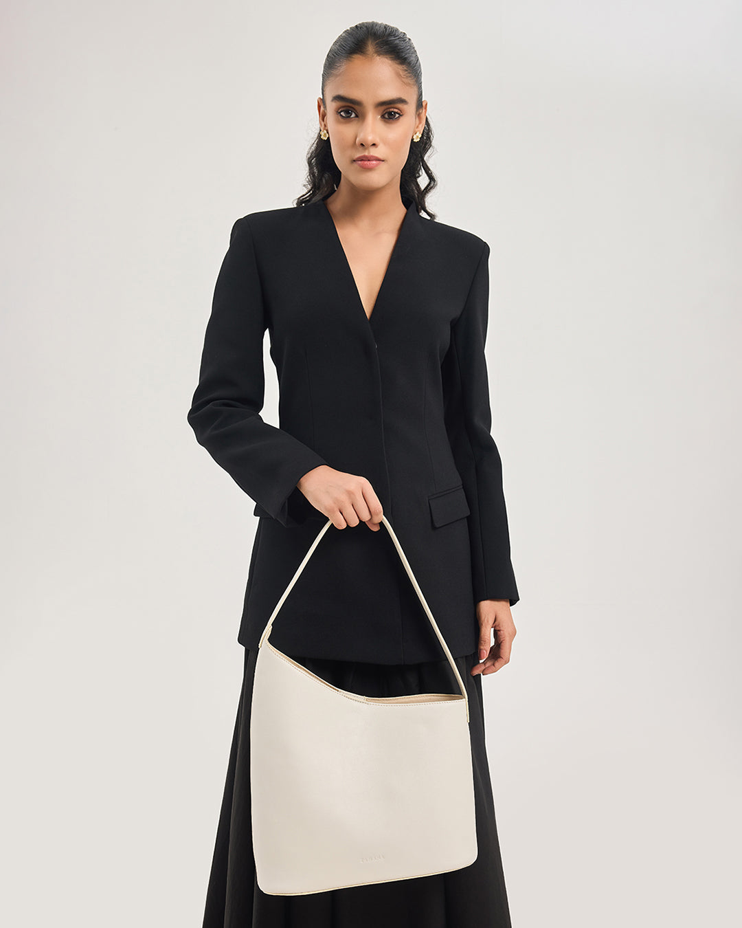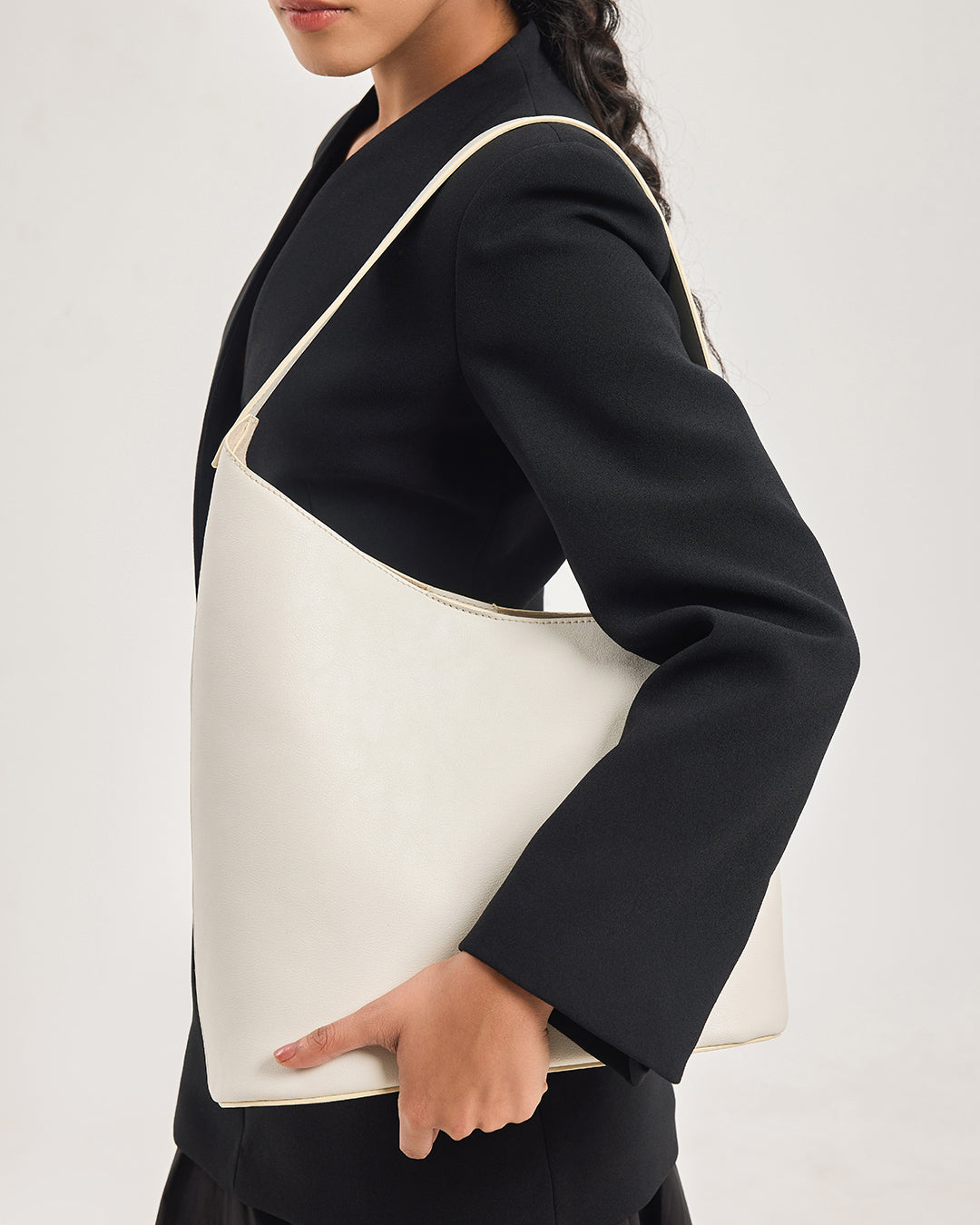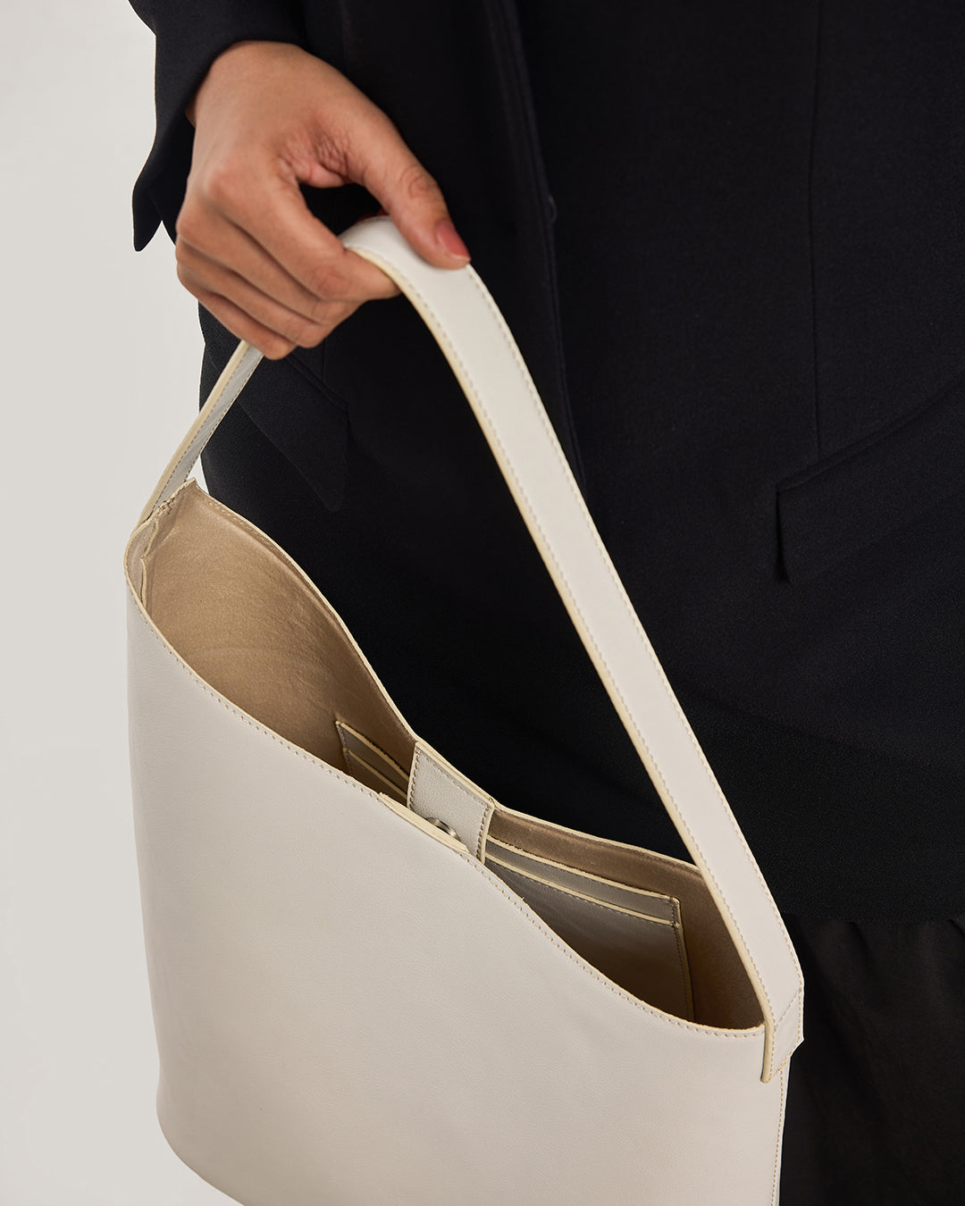 Thoughtfully proportioned for daily ease, this tote offers generous space without compromising elegance, making it an ideal choice for modern routines. The single, sculpted shoulder strap ensures comfort, while the minimal exterior keeps the focus on form, texture, and timeless appeal.