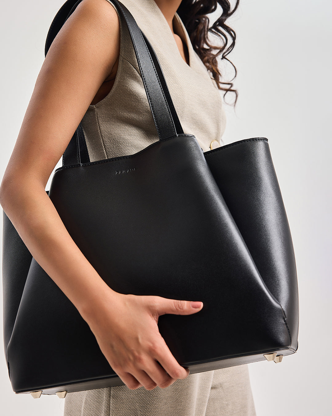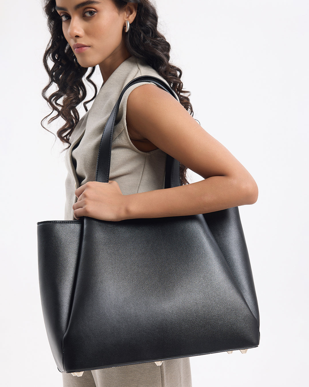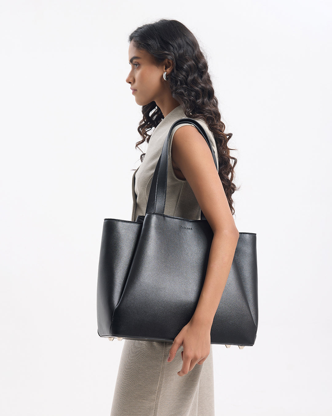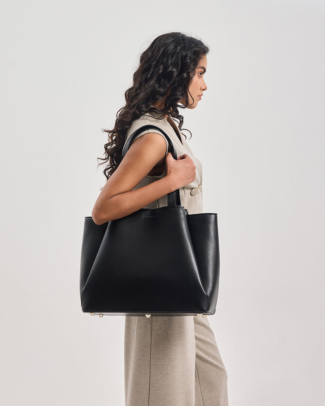 Mashka is a large tote that can help you keep pace with the daily beats. It has three compartments aptly positioned and has space to fit in a laptop making it not only refined but functional as well. In earthy Brown, breezy Beige, Black and fresh Green the Mashka adds structure, space and ease to your everyday movement.