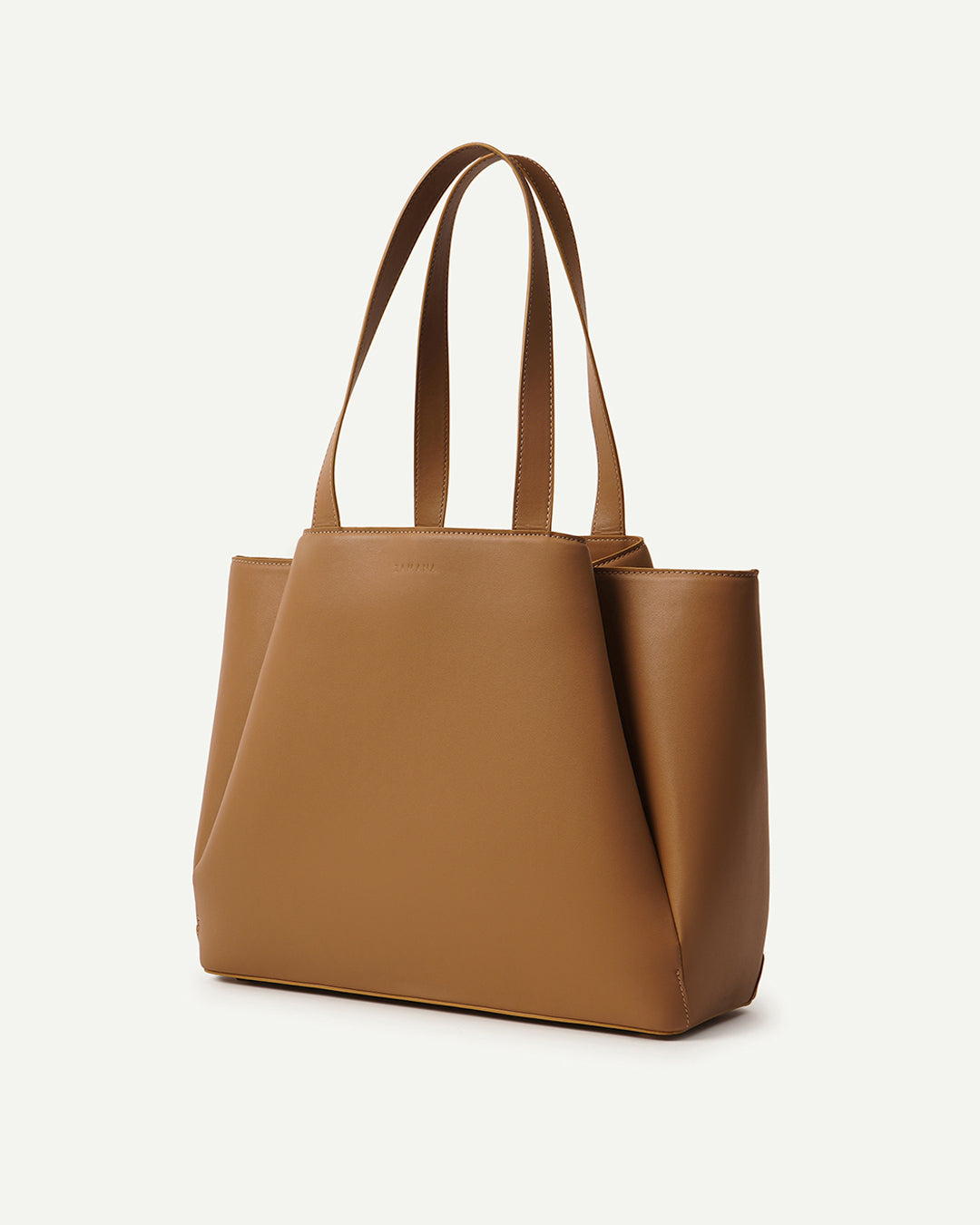 Mashka is a large tote that can help you keep pace with the daily beats. It has three compartments aptly positioned and has space to fit in a laptop making it not only refined but functional as well. In earthy Brown, breezy Beige, and fresh Green the Mashka adds structure, space and ease to your everyday movement.
